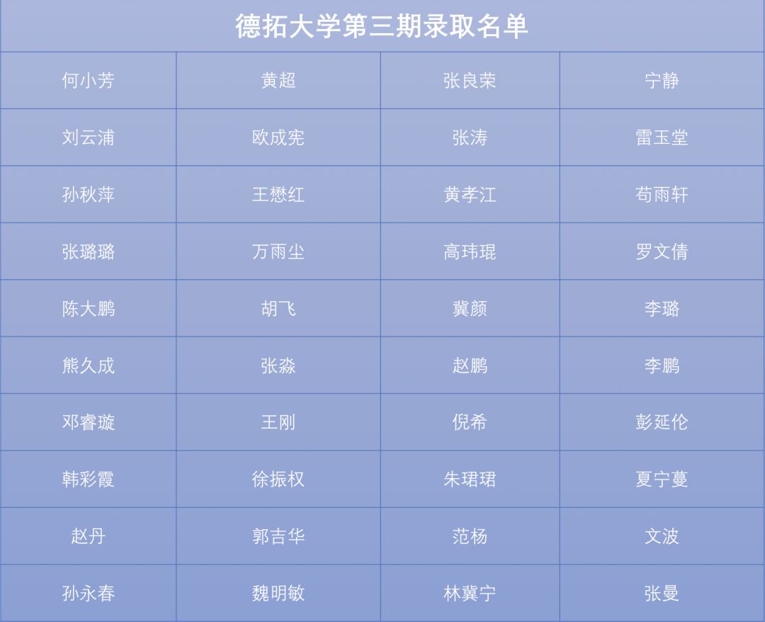 全体校委会成员再次衷心祝贺以上40位学员成为德拓大学三期的一员!