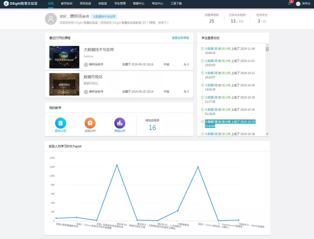 实验平台集教学体系、实验管理、技能培训、科学研究于一体,致力于解决实战教学中的随需搭建、集群部署、资源整合、新课程建设、创新创业项目开展与应用等方面的问题;