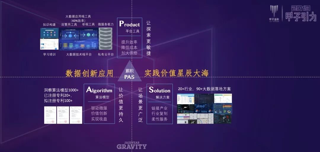 最后,还有一个重要的——解决方案;光有刚才这两点,那我们的规模做不大,因为你每个落地项目都自己做是无法实现规模的。所以依靠解决方案,我们才能有更大规模。目前为止我们完成了20多个行业80多种落地的方案,使得我们知道什么样的行业能够更精准地去做柔性数据化服务。