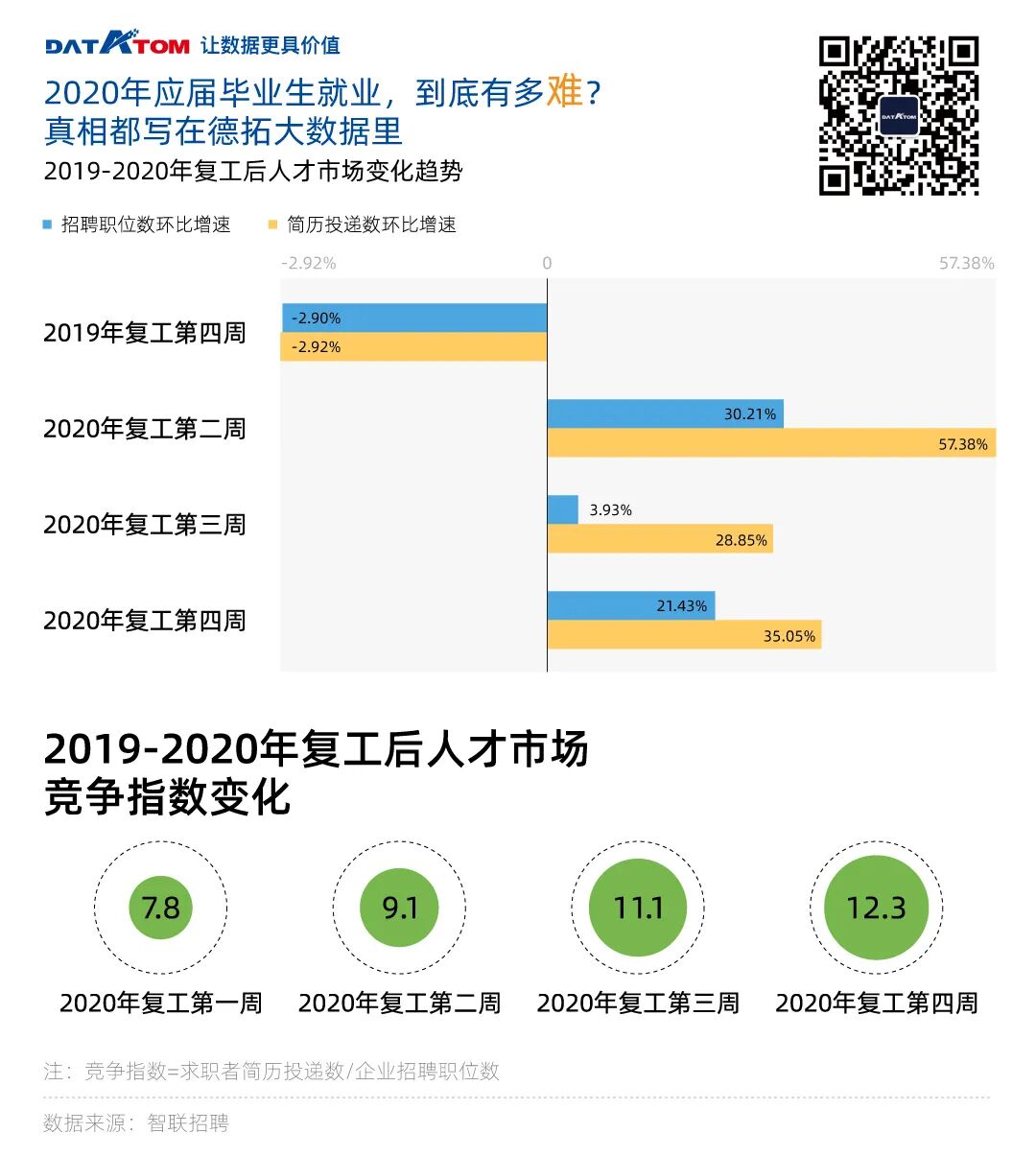 随着疫情得到缓解,复工后求职意愿增加,但招聘岗位增速远低于简历投递数。竞争指数将会持续上升,竞争压力也一定会愈演愈烈!