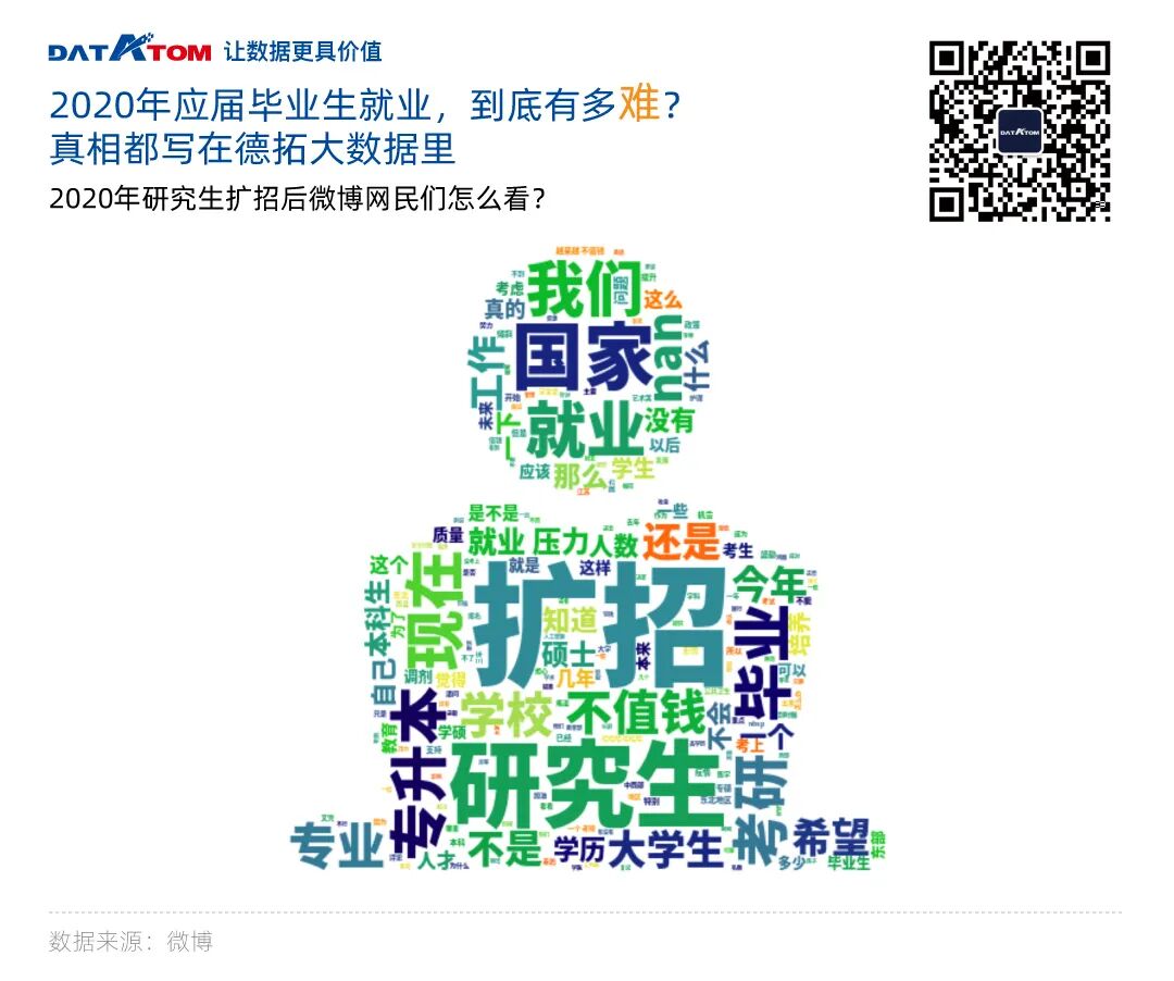 “就业压力”、“越来越不值钱”等关键词反映出网友们对于此次研究生扩招的态度以及对未来的担忧。
