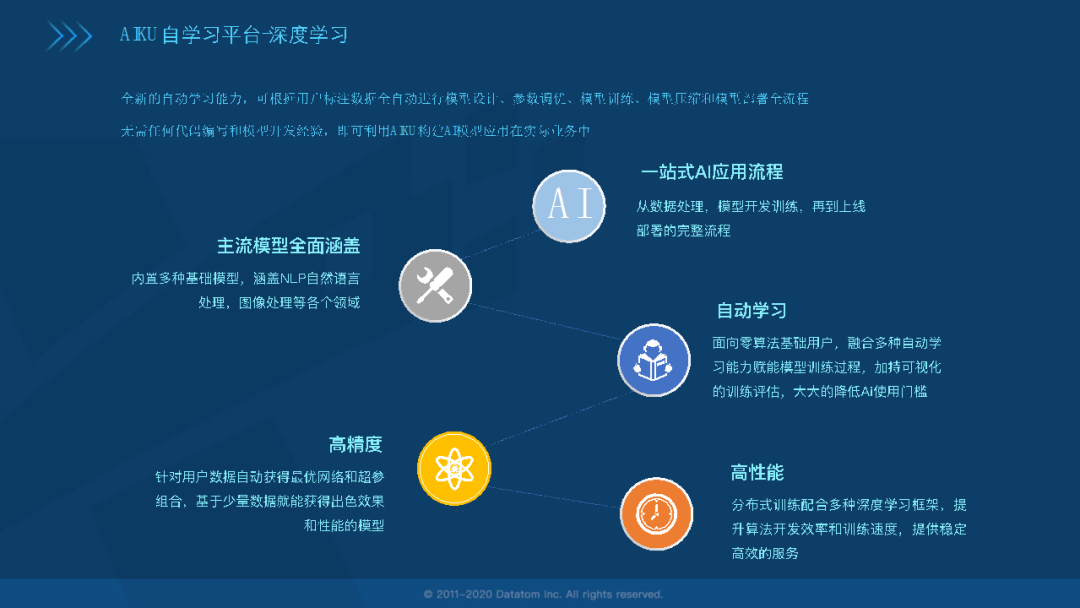 随着AI能力的不断提升,AI技术的创新,德拓在成功推出DDP大数据技术平台、DanaStudio数智开发平台、PandaBI数智决策平台后即将推出AIStudio人工智能创新产品平台。