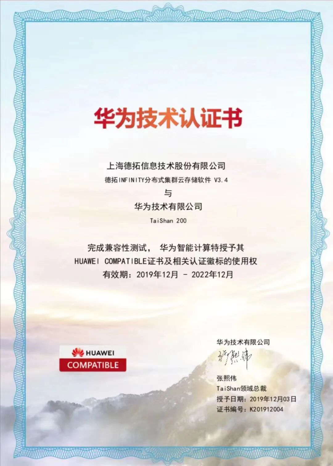 • 国产化开发:为响应国家号召和部分客户需求,德拓对INFINITY的国产化适配做了深度的探索,现已全面支持鲲鹏系列CPU、兆芯系列CPU、飞腾系列CPU等多种硬件,并取得HUAWEI COMPATIBLE证书,操作系统方面也已能完美适配中标麒麟、银河麒麟、凝思磐石等多种国产操作系统;