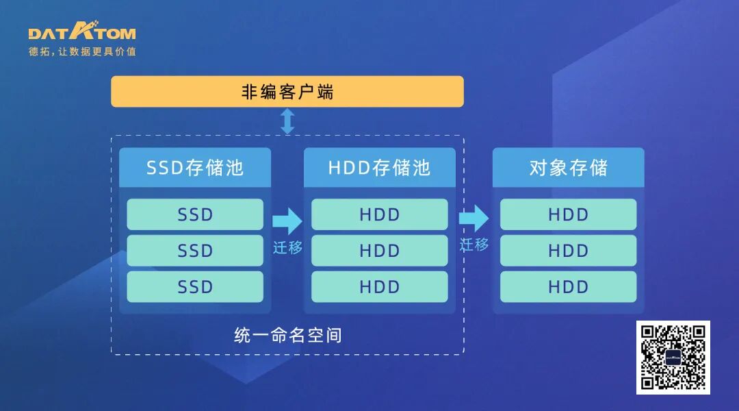 德拓信息通过数据冷热分层存储,智能分层能够帮助用户在存储成本和读写性能之间寻找平衡点。智能分层存储作为一种存储类型,天然适配非编组网应用,方便用户按需管理在存储上的数据,为用户提供业界内性价比最高的存储服务。