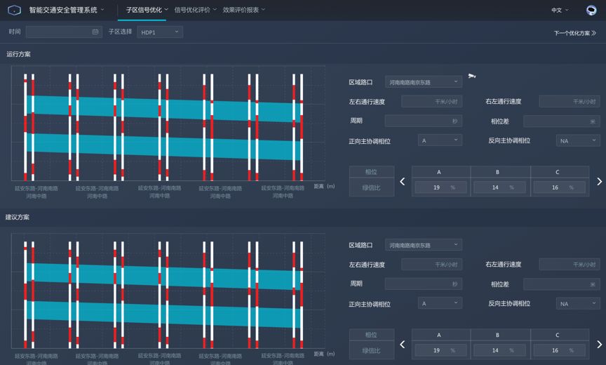 其次对信号配时进行多路口协调优化,建立多个交叉口相互关联的信号配时优化方案组合,对已经实现协调控制的干道进行深度优化,并逐步实现区域之间的协调控制;